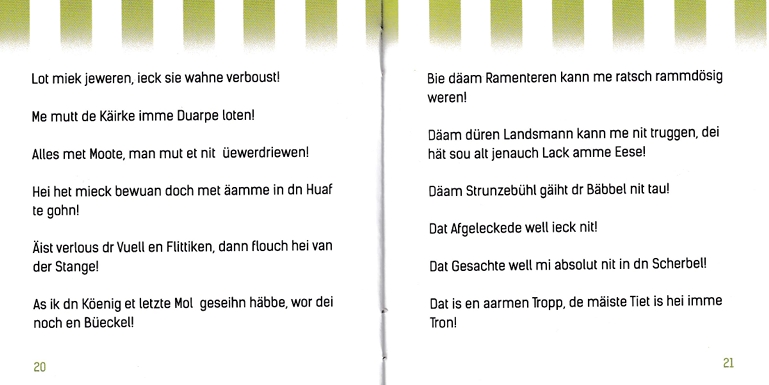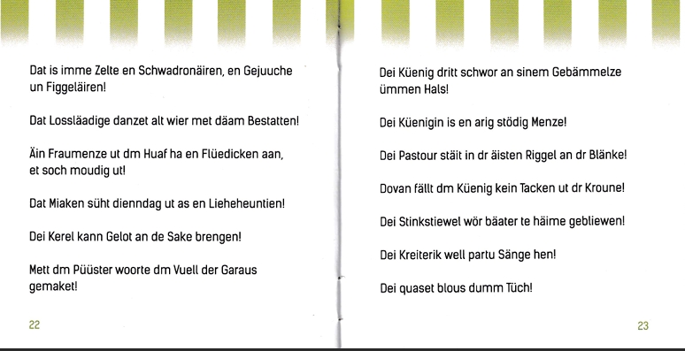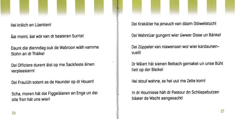 Dieses kleine Heft zeigt Wörter und Sätze in der Plattdeutschen Sprache. Mittlerweile gibt es nur noch wenige Einwohnerinnen und Einwohner, welche diese beherrschen.