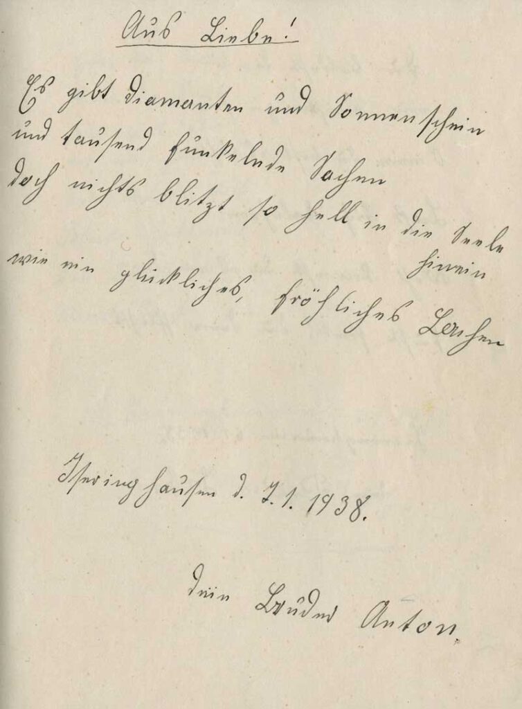 Hier handelt es sich um einen alten Brief aus dem Jahr 1938, verfasst von einem gewissen „Anton“. Grob übersetzt bedeutet das Ganze: