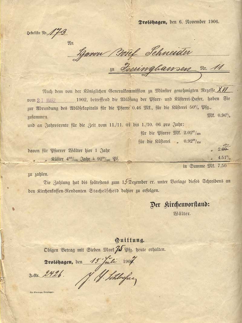 Ja, das da oben ist unsere Kirche! Der Glockenturm wurde im Jahr 1920 noch nicht gebaut. Und auch die Grundstücke drumherum sind noch nicht bewohnt, denn all das passierte erst viele Jahre später. Das untere Bild zeigt das erste Gebäude auf der rechten Seite beim Ortseingang (Richtung Brachtpe).