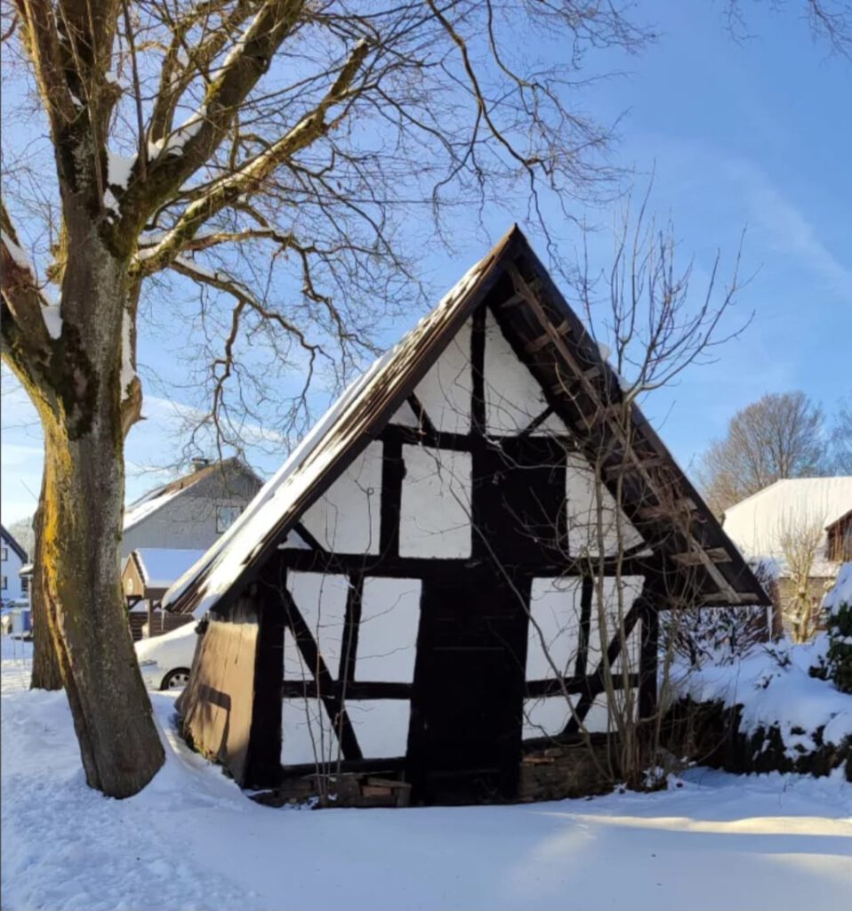 Wer sich schonmal eine Dokumentation aus früheren Zeiten zum Thema Brot angesehen hat, der weiß bestimmt, dass es früher normal war ein eigenes Backhaus zu besitzen. Darin wurde wie es der Name schon sagt gebacken. Meistens war es einfaches Brot, aber es gab auch Familien die darin erste Gebäcke produziert und manchmal sogar verkauft haben. Das Haus was ihr hier sehen könnt steht als eines der letzten „Auf dem Wigger“.