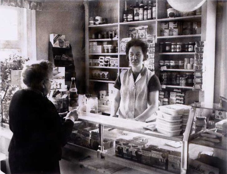 Einkaufen in Iseringhausen – Früher etwas ganz normales! Dieses Bild zeigt Regina Viedenz (Franzes) und eine Kundin im damaligen Tante-Emma-Laden in der Brachtpetalstraße.