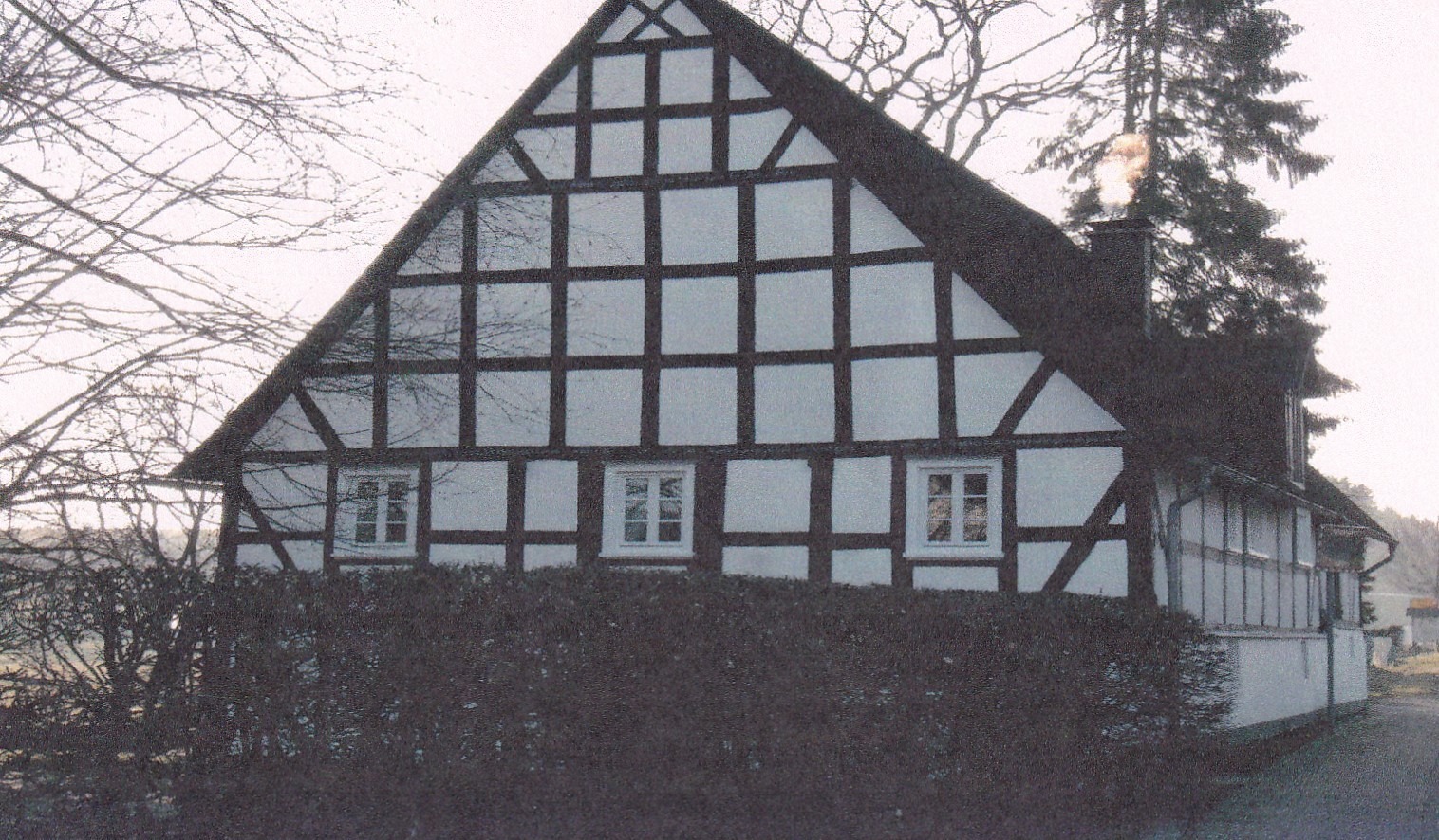 Eine uralte Aufnahme des Wohnhauses „Auf der Hütte“ 1. Hier wohnte erst Familie Schmidt, anschließend Zobel und heute Trumm. Das Gebäude wurde im laufe der Zeit immer wieder modernisiert und umgebaut und sieht mittlerweile stark verändert aus.
