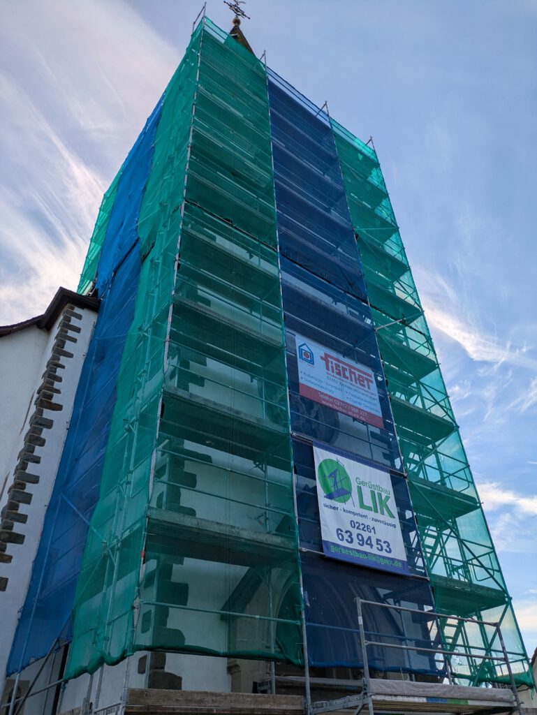 - 1) Die Holzstangen sind keine Stützen für den Innenraum, es handelt sich dabei um Baugerüste an denen die Arbeiter hochgeklettert sind