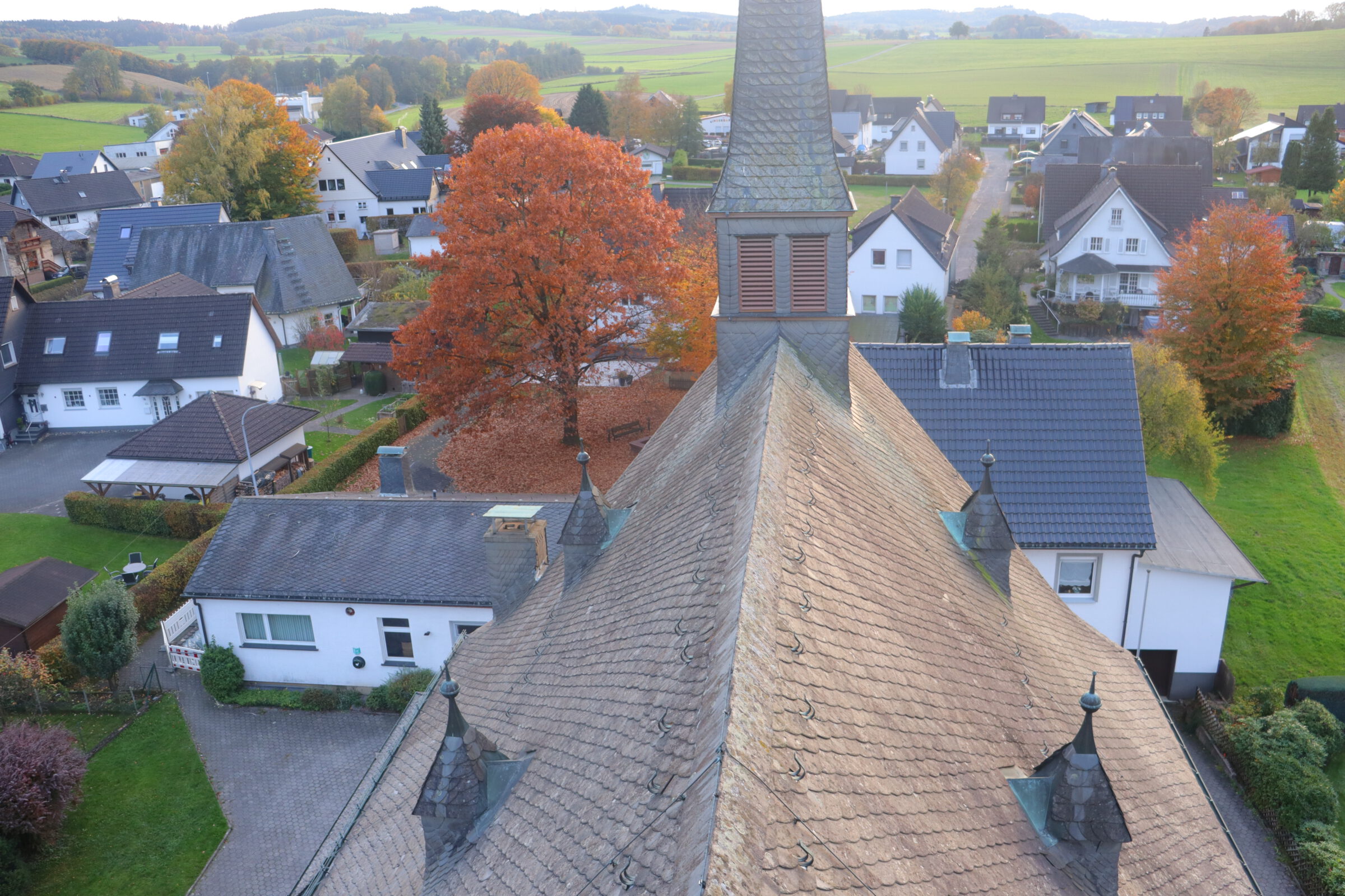 Wer kann sich heutzutage ein Iseringhausen ohne den Kirchturm vorstellen? Niemand! Doch damals als die Kirche gebaut wurde, gab es eine Zeit wo diese noch keinen Kirchturm hatte! Dieser wurde erst ein paar Jahre später ergänzt. Der Bau dauerte 2 Jahre, renoviert hat man die Kirche dann erst wieder von 1994-1996. Auf den Bildern erkennt man folgendes: