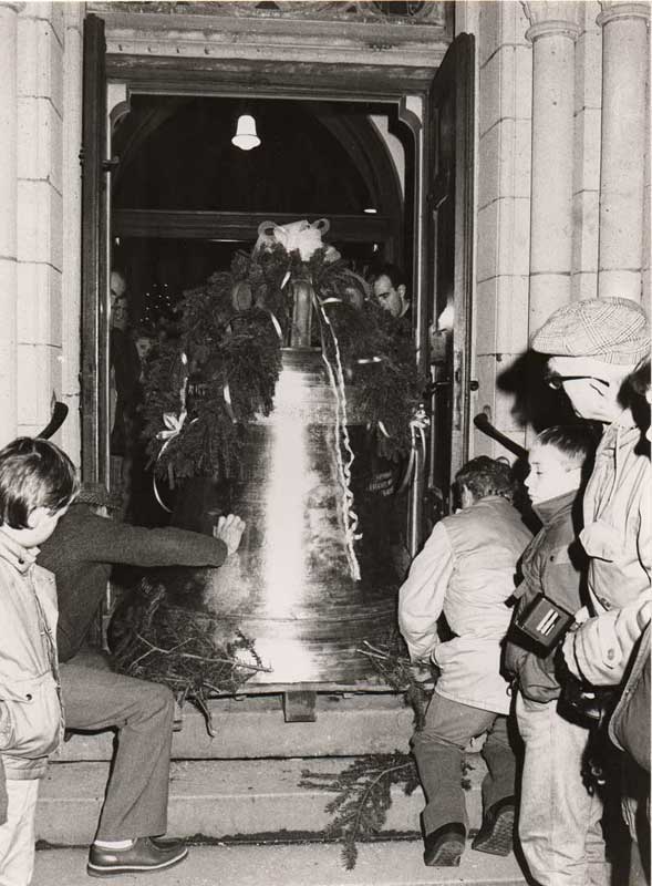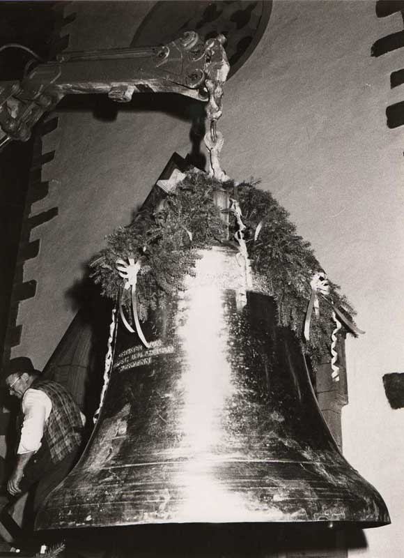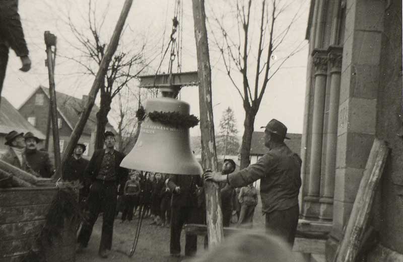 Passend zu den Renovierungsarbeiten musste eine neue Glocke her. Die Karlsruher Glocken- und Kunstgießerei goss diese 1475 kg schwere Glocke für unsere Kirche. Die Bilder zeigen das offizielle Anschreiben und das danach bereitgestellte Glockentagebuch. Alle anderen Fotos zeigen die Herstellung und die Installation im Kirchturm. Das Gewicht der Glocke beträgt 1.576 kg.