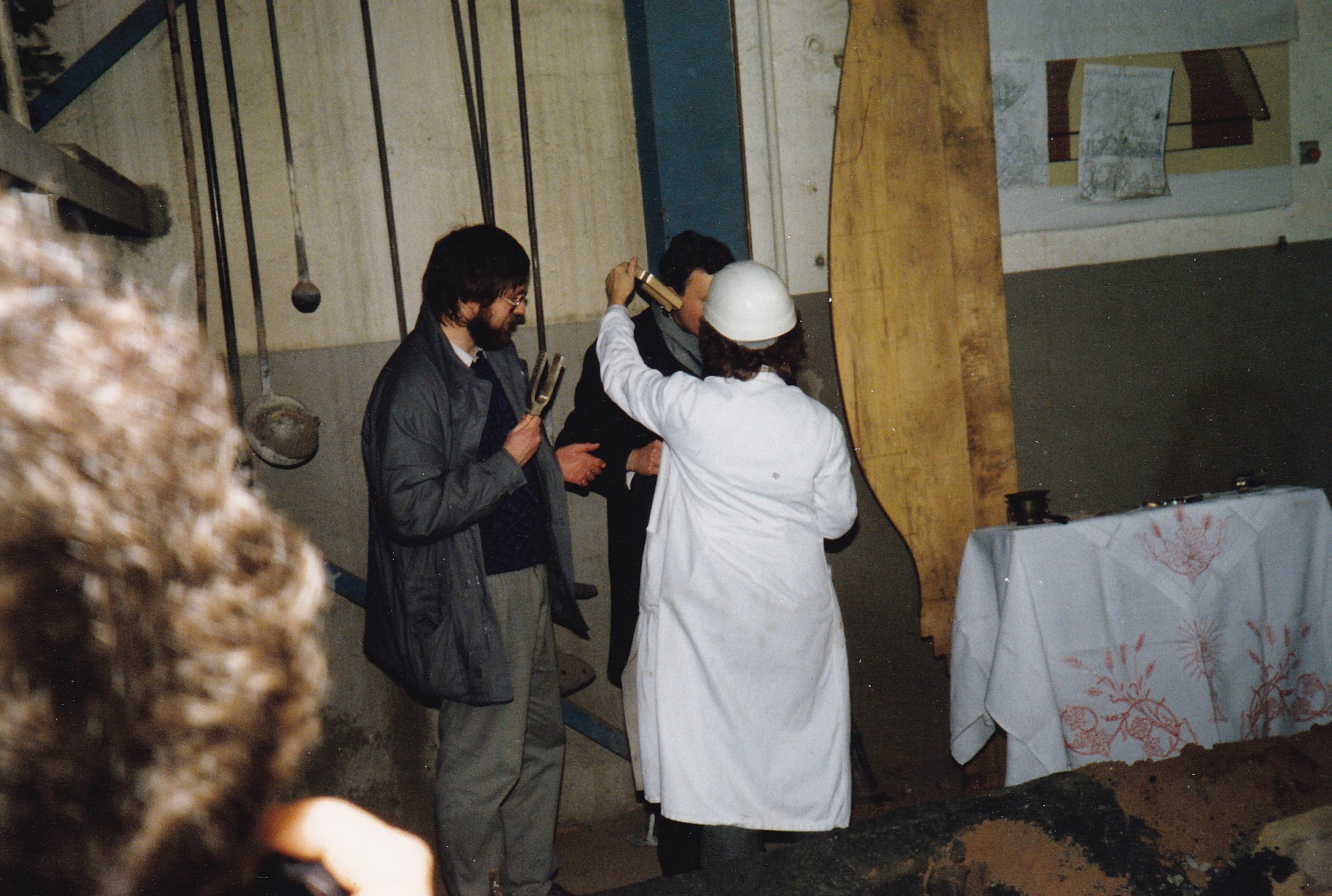 - 3) Die Gastarbeiter stehen vor dem Grundriss der Kirche