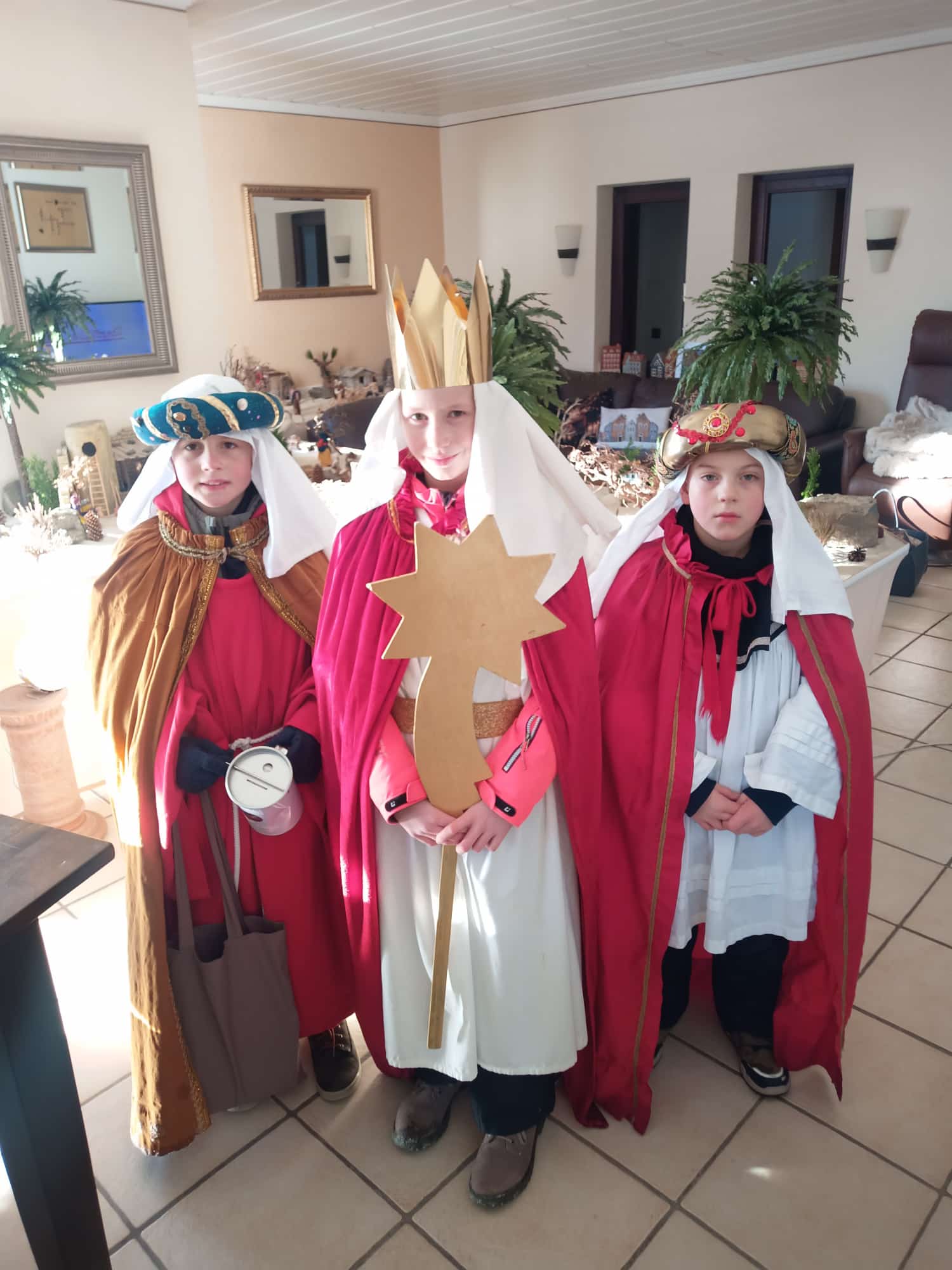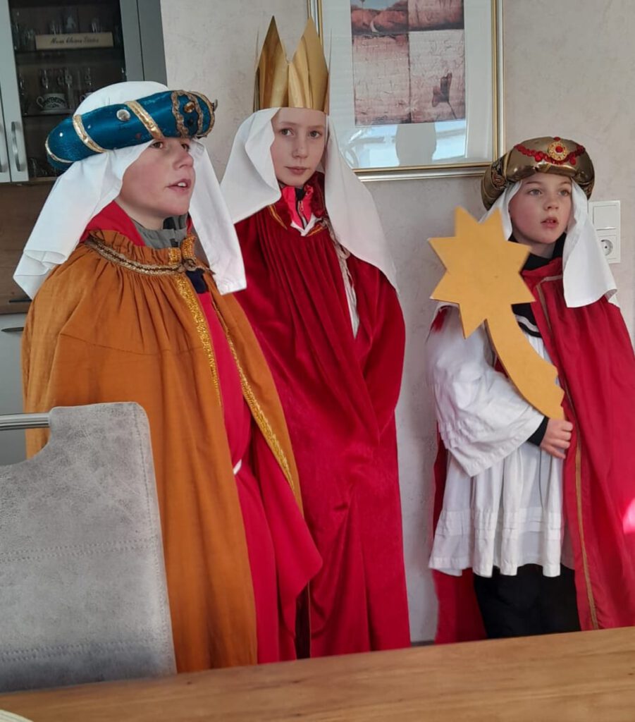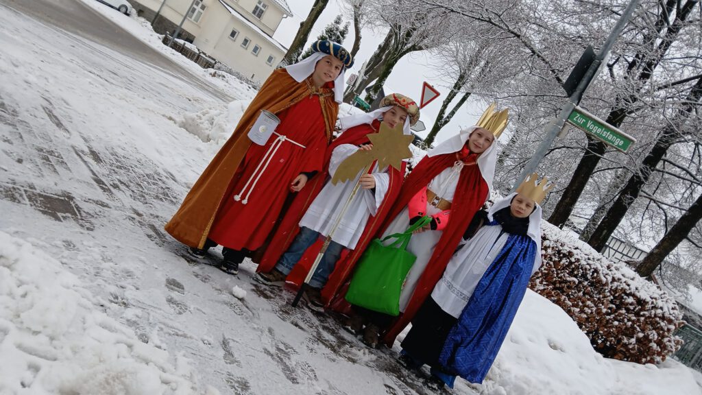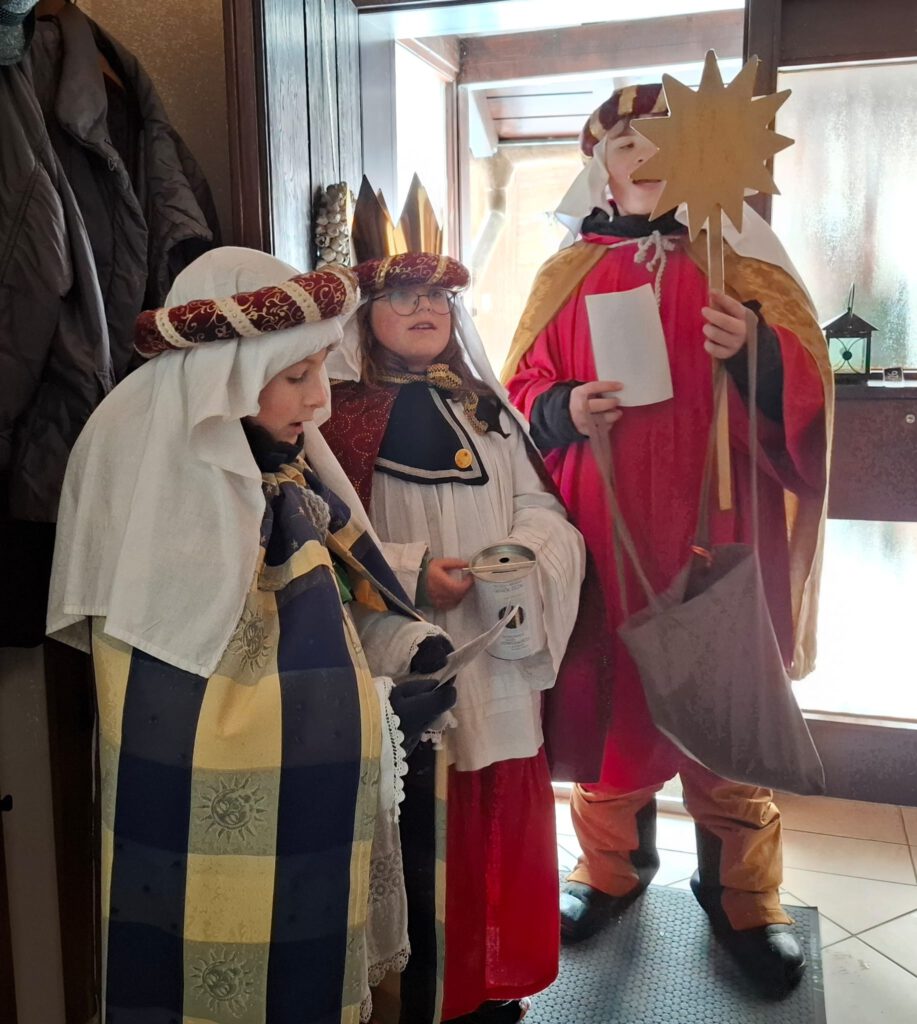 Es läutete an den Haustüren und nach dem öffnen fingen sie direkt an zu singen – Unsere Sternsinger. Mit ihrem Stern aus dem Morgenland brachten sie den Segen ins ganze Dorf und hinterließen danach noch ein Weihrauchpäckchen zum selbst entzünden und den Türaufkleber [20*C+M+B+26].