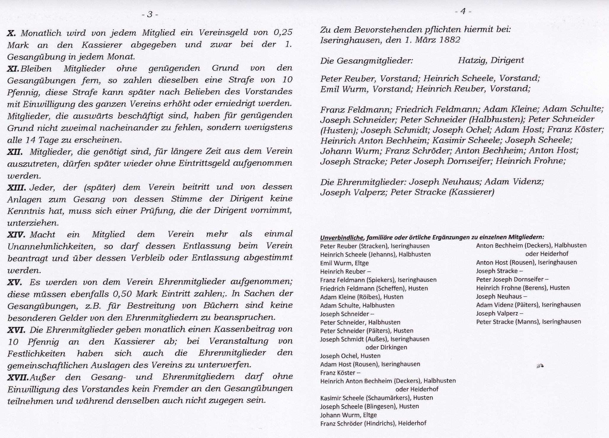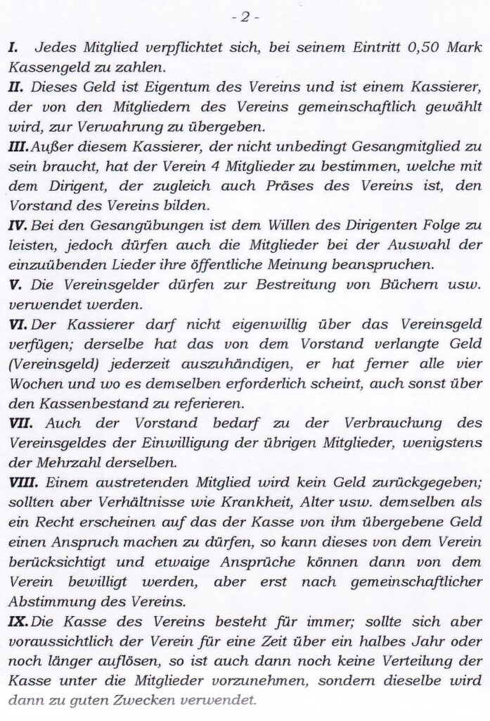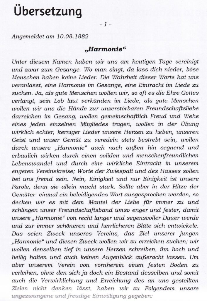 Gründungsprotokoll des Ersten Männergesangvereins Iseringhausen 1882